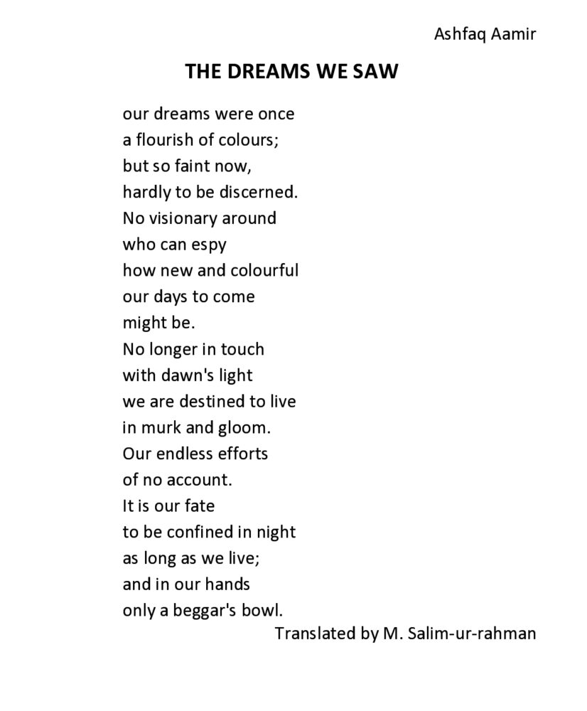 THE DREAMS WE SAW یہ تحریر 958 مرتبہ دیکھی گئی Posted by محمد سلیم الرحمٰن 25/05/2022 محمد سلیم الرحمٰن کی دیگر تحریریں 1عنوان : نظم2عنوان : نظم3عنوان : وقت: الف اور یے4عنوان : نظم5عنوان : Ar The Year's Ending6عنوان : نظم محمد سلیم الرحمٰن 25/05/2022
